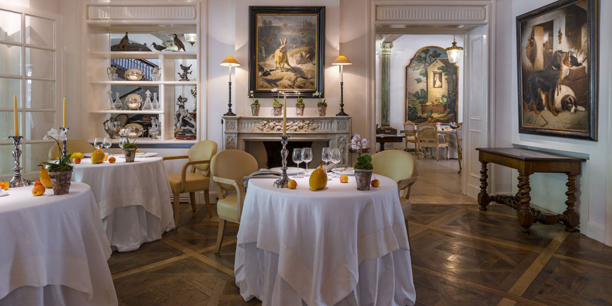 Les tables, nappées de linge blanc impeccable, sont dressées avec une vaisselle fine et des couverts en argent, témoignant d’un souci du détail et d’un raffinement sans égal.