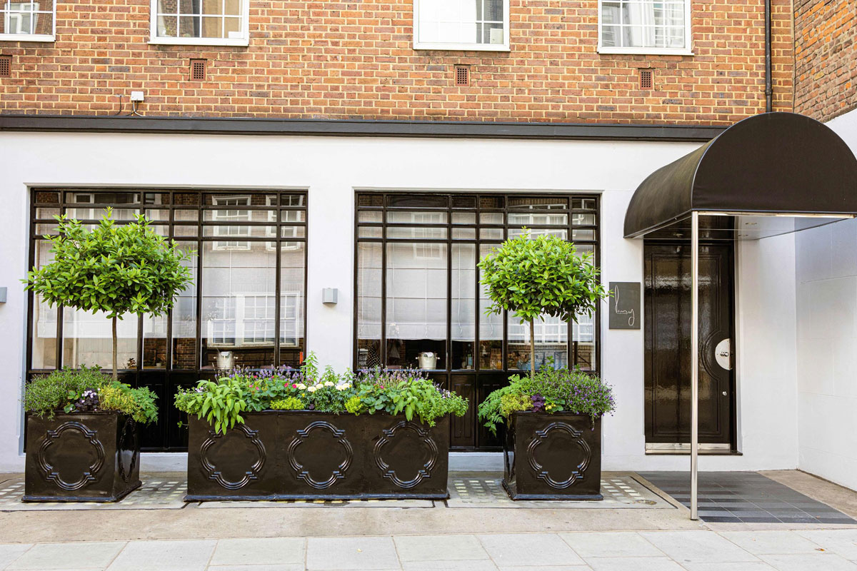 Le restaurant se trouve dans une rue paisible de Chelsea, un quartier réputé pour ses élégantes résidences victoriennes, ses boutiques haut de gamme et ses galeries d’art. L’extérieur de l’établissement est sobre et discret, avec une façade en briques typiquement londonienne, agrémentée de grandes fenêtres laissant entrevoir l’ambiance raffinée de l’intérieur. Une petite enseigne indique le nom du restaurant, reflétant une élégance minimaliste qui contraste avec l’opulence de l’expérience culinaire offerte à l’intérieur.